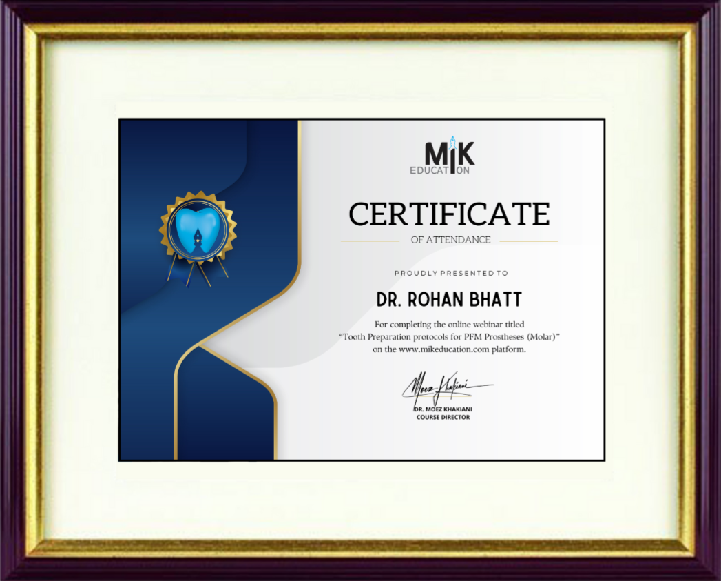 Dr. Moez Khakiani is one of my favourite prosthodontist in the globe. His online course was an exceptional learning experience. His deep knowledge and passion for prosthodontics are evident in every slide he presents. The course content was well-structured, covering everything about tooth prep for PFM.