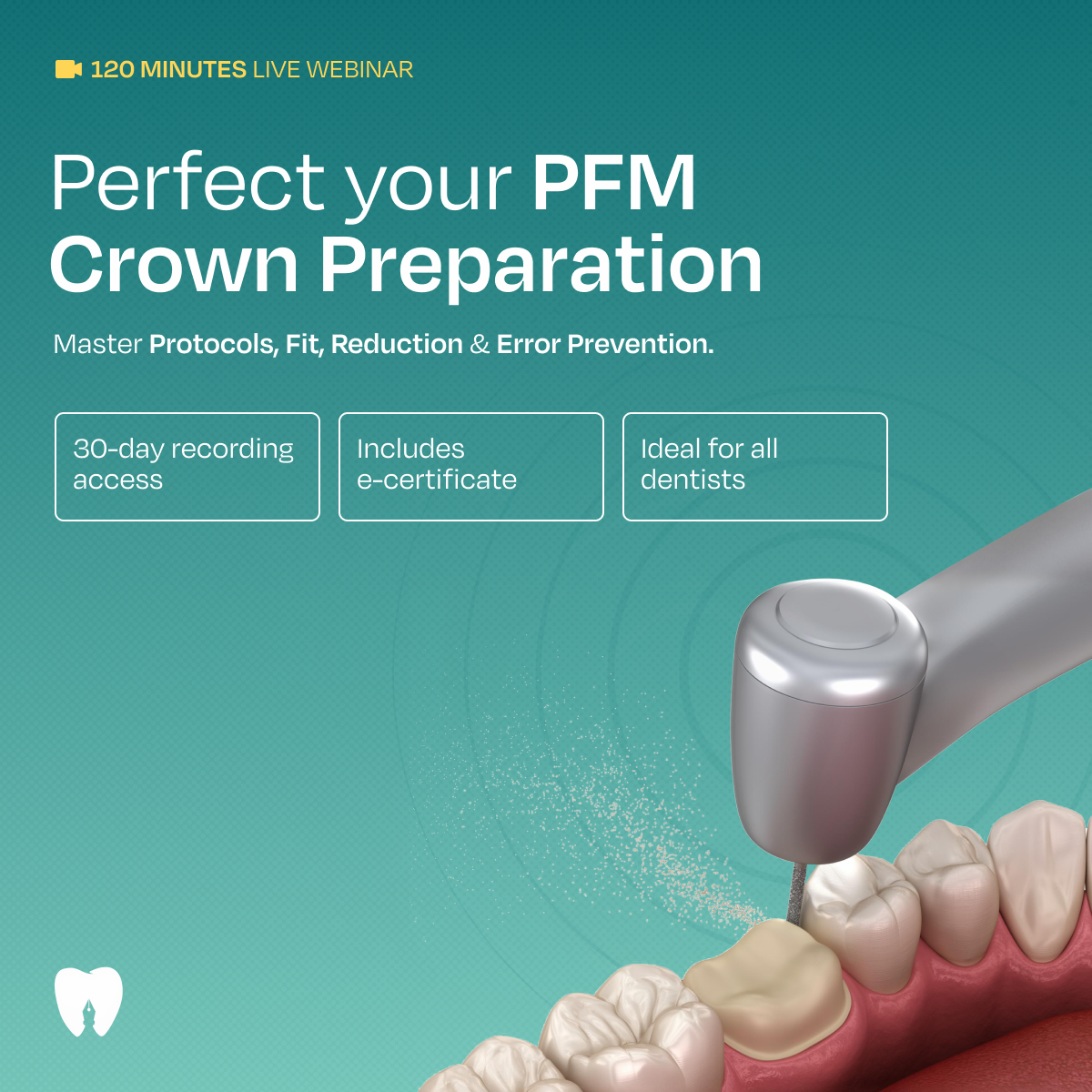 PFM crowns are an age-old material that continues to form the bread and butter of most dental practices. While they've been around for decades, there's still a surprising lack of clarity around crucial aspects of their preparation—such as design concepts, correct burs to use, ideal margin architecture, and the precise amount of reduction needed.