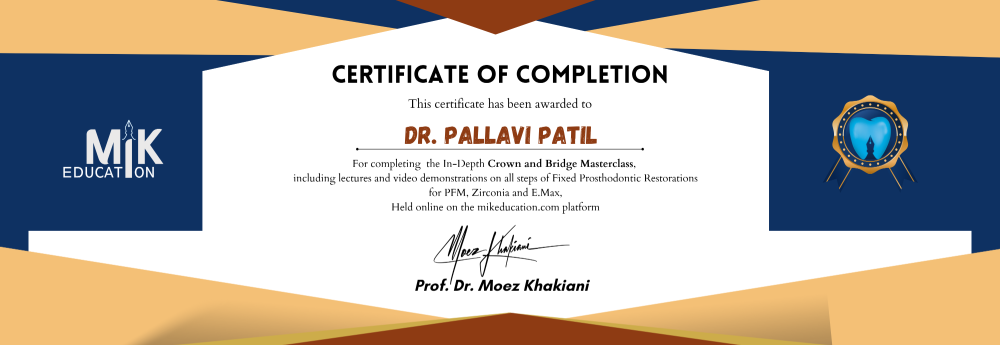 Upon completing this course, you’ll receive this e-certficate that celebrates your proficiency as a Crown and Bridge Champion and highlights your dedication to continuing education!